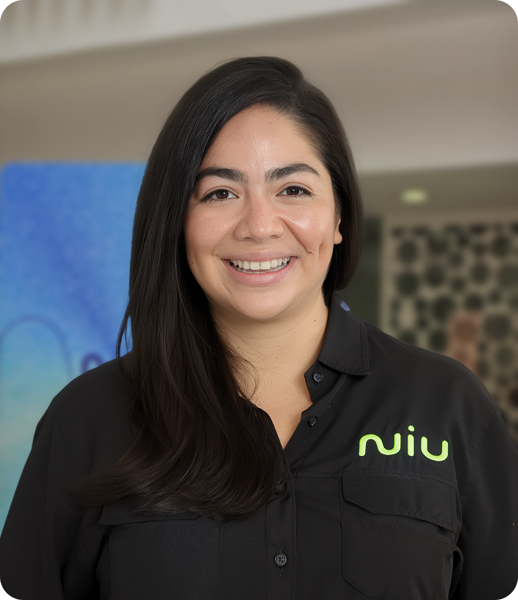 Es la responsable de diseñar y evolucionar los productos y funcionalidades de Niu. Su labor garantiza que cada solución sea intuitiva, accesible y alineada a las necesidades reales de los salvadoreños, impulsando la experiencia del usuario y la propuesta de valor de la marca.